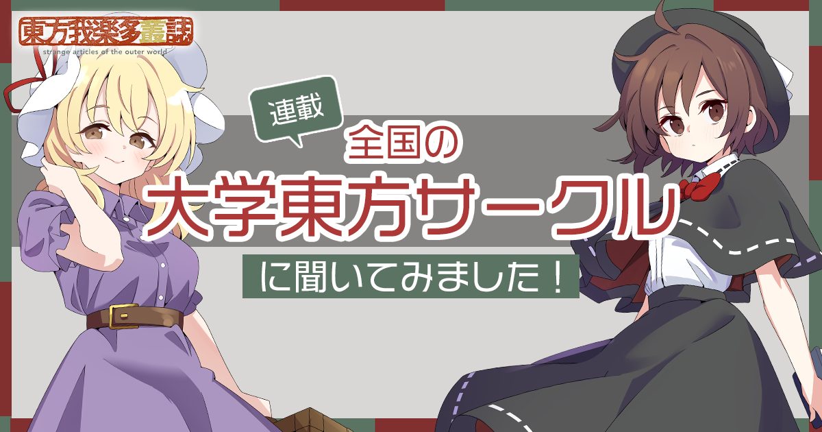 東方我楽多叢誌(とうほうがらくたそうし)は、世界有数の「同人」たちがあふれる東方Projectについて発信するメディアです。原作者であるZUNさんをはじめとした、作家たち、作品 たち、そしてそれらをとりまく文化の姿そのものを取り上げ、世界に向けて誇らしく発信することで、東方Projectのみならず「同人文化」そのものをさらに刺激する媒体を目指し、創刊いたします。