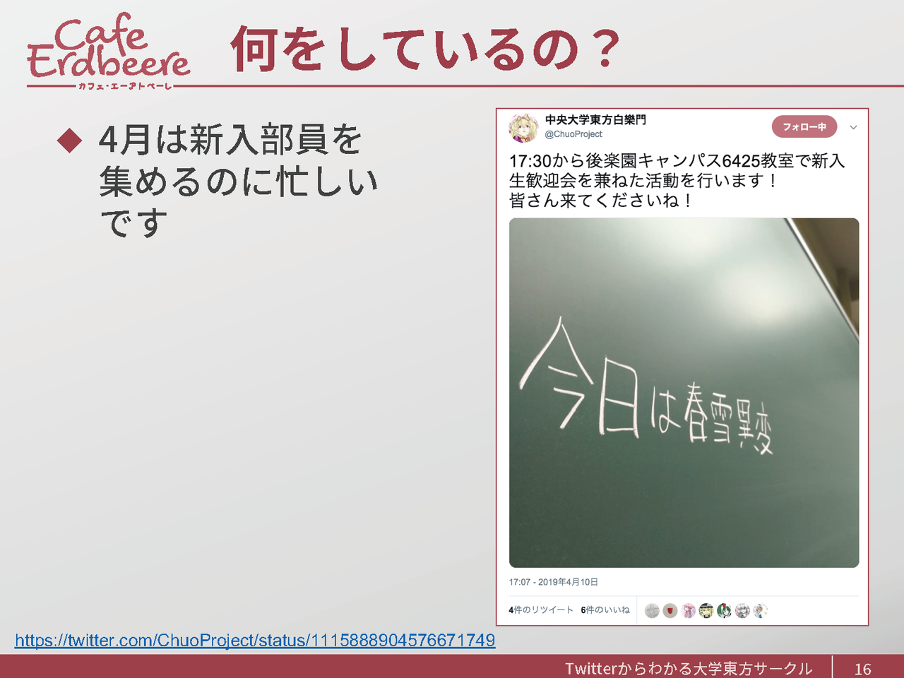 “大学東方サークル”ってなんだ? 「Twitterから分かる大学東方サークル」/ 各大学東方サークルさんの「新入部員募集のお知らせ」を、大募集! おわり
