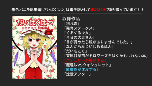 本のあらすじは「吸血鬼の弱点が“水・巫女・太陽”であることを聞いたフランが、太陽をぶっ壊してしまったこと」から始まります。