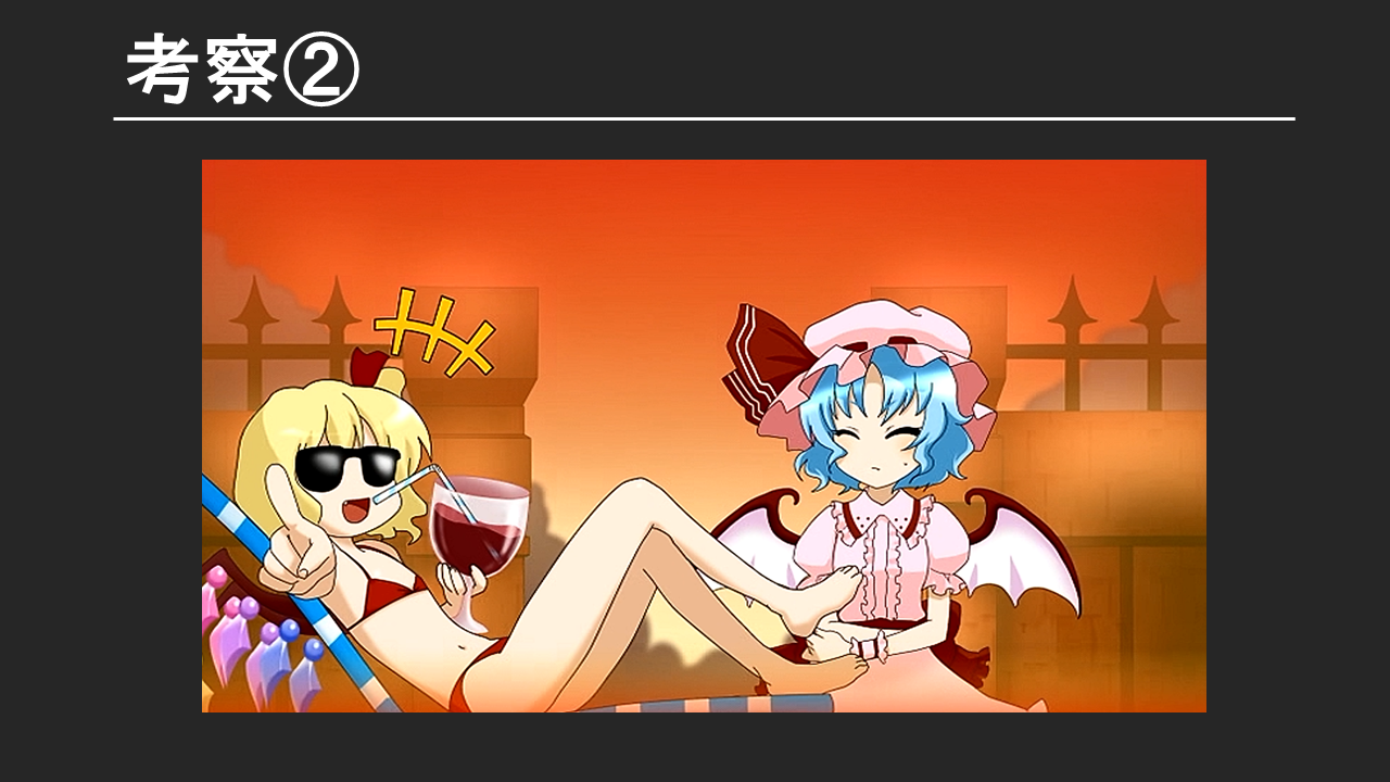 原作のキャラクターや設定を元に、「考察」を深める、という楽しみ方もあります。原作だけではなく、二次創作や東方に纏わる様々な情報を元に、新たな観点や解釈を導き出したりすることもあります。