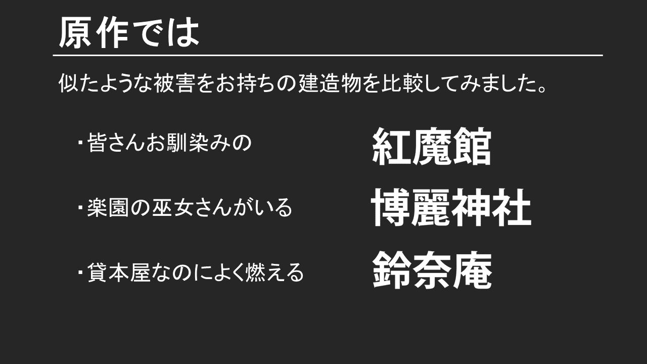 調べてみて分かった事は、「紅魔館爆発というのは一つの表現方法」ということです。