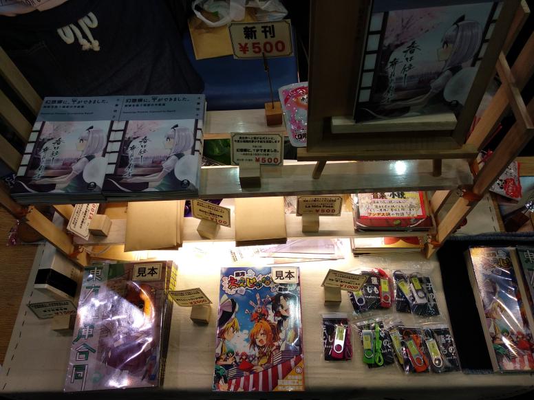 次は同人誌です。東方世界の魂そのものです(著者の意見です)。同人漫画、小説や画集などは音楽とは別のホールで頒布されていました。それでは、日本語が読める方でしたら、同人誌を見に行ってみてください。スペースの間を歩いて回ったり、サンプルを読んだり、作者の想像力に驚いたりすることには残りわずかの時間を吸い取りますね。