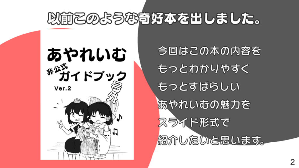 皆さんもこのあやれいむガイドを参考に二次創作を楽しんでいただければ幸いです。あわよくばもっとあやれいむ本が増えてくれると私がうれしいです。