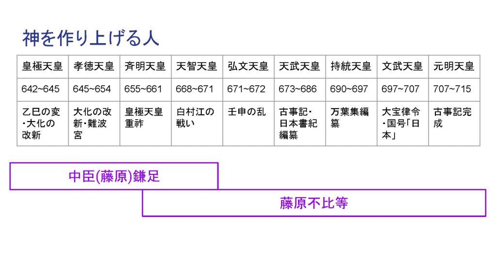 古事記の成立過程を見ると、天武天皇の発案によるものと言われています。つまり、そのあたりの時期に、歴史書を必要とするような事情があったと解釈できるでしょう。