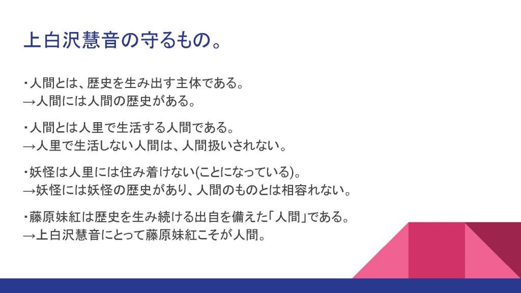 慧音とは「藤原妹紅」という名前を持つ人間として。