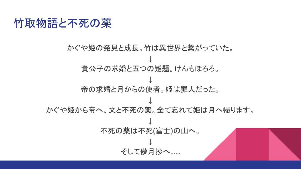 キーアイテムである不死の薬について、作用機序とかそういう難しい話はおいておいて、どのようなものかを記述から考えてみましょう。
