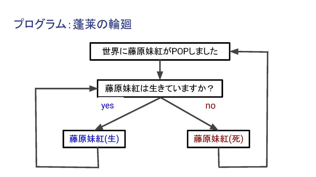 一つは、蓬莱の輪廻の図で見たように、世界に実体として現れる肉体は一つだけということです。同時に二体も三体も藤原妹紅が現れることはありません。世界に藤原妹紅はただ一人だけであることが保証されています。