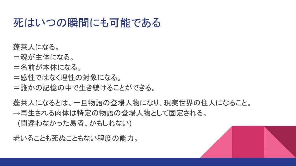 「蓬莱人になる」ということは、魂が本体になる、つまり実体ではなく名前がその人になるということです。