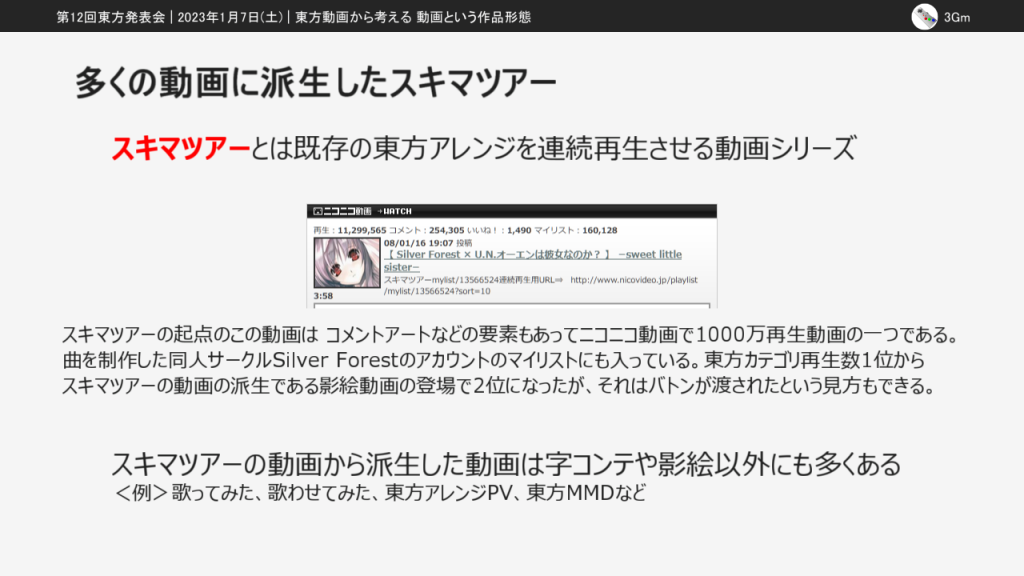 ここだけでも色々考察出来ることはありますが、この発表では派生動画に注目します。