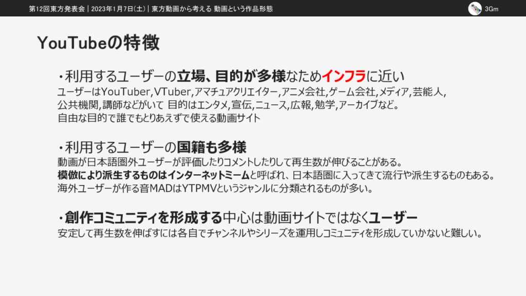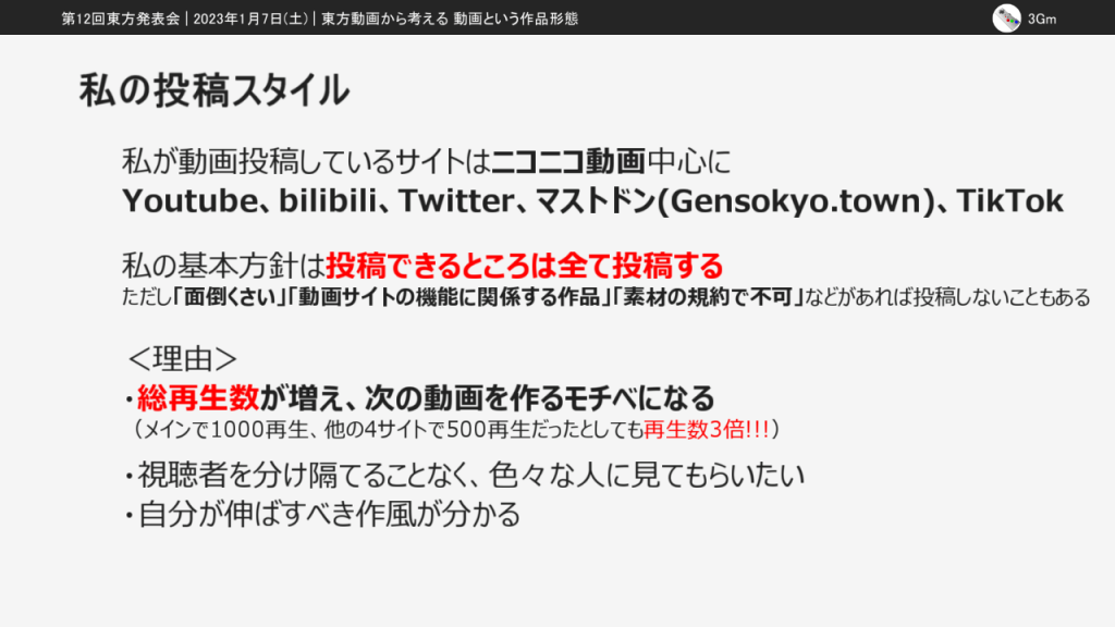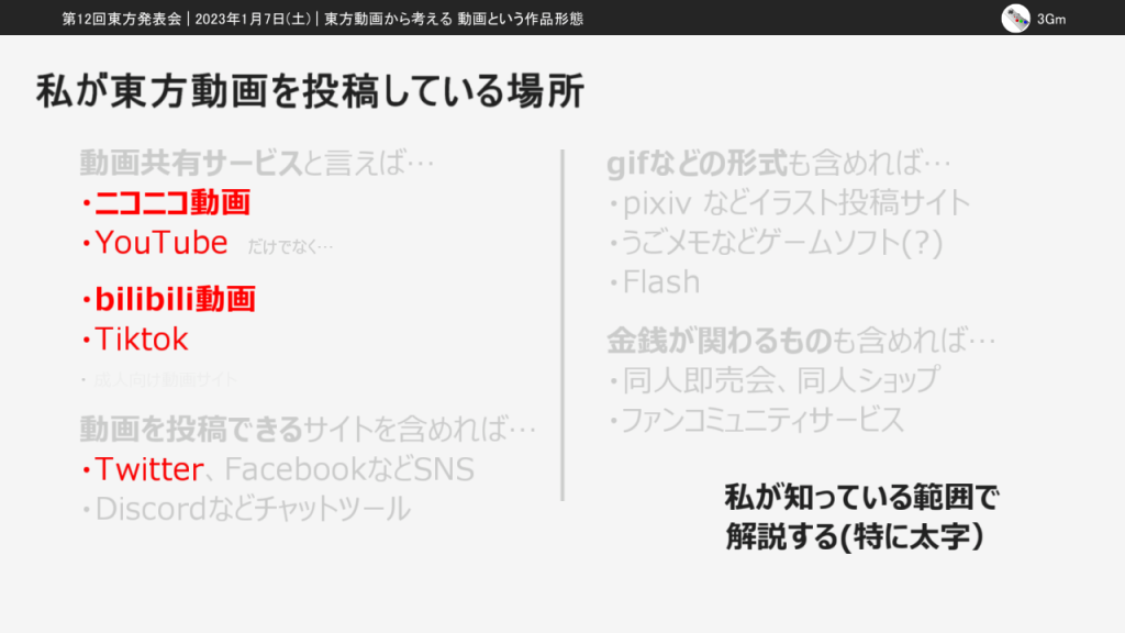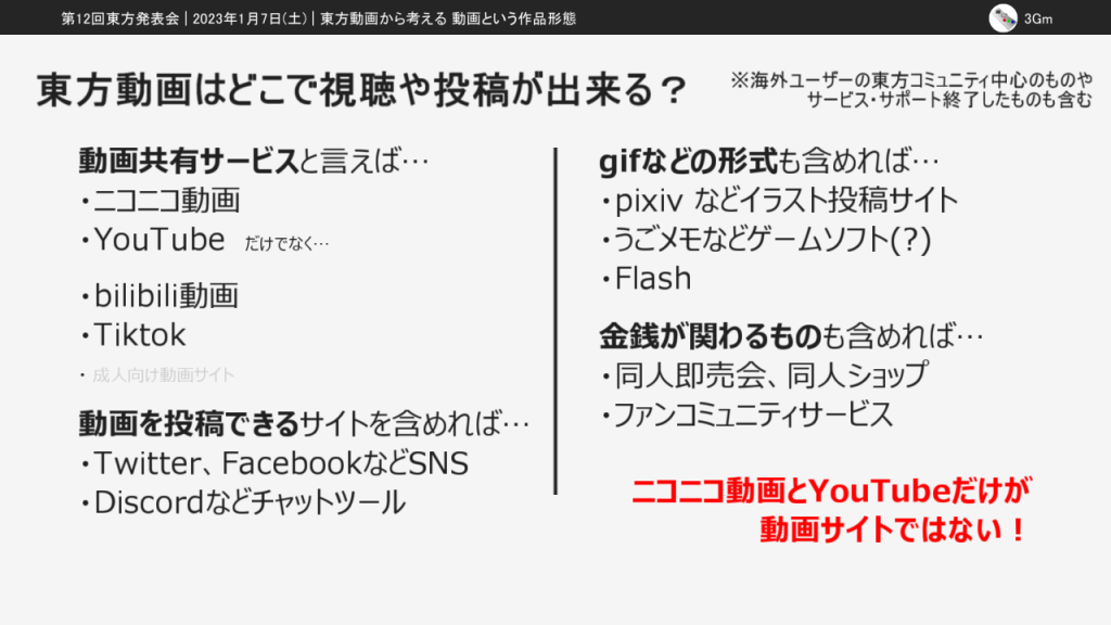ここからは動画を投稿できる場所と投稿される東方動画について考えていきます。