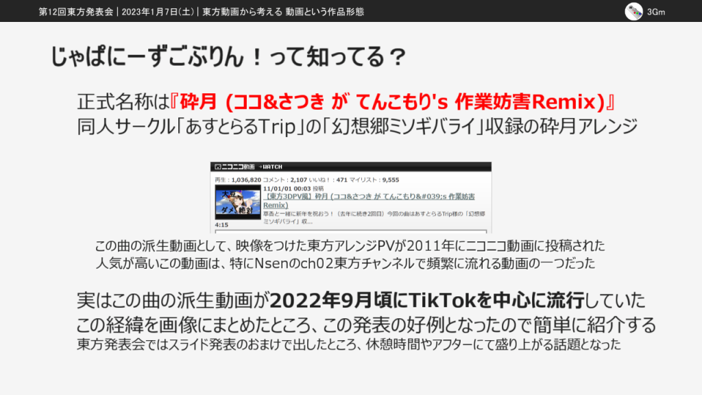 2023年1月7日開催の「第12回東方発表会」で公開されたスライドを、発表者のご許可をいただいて掲載いたします。