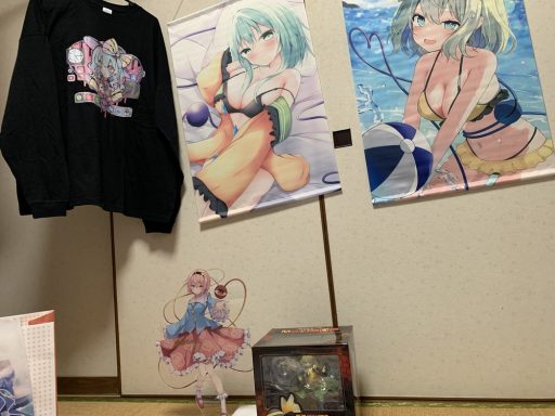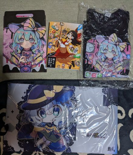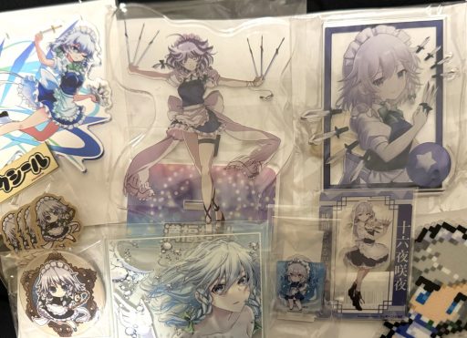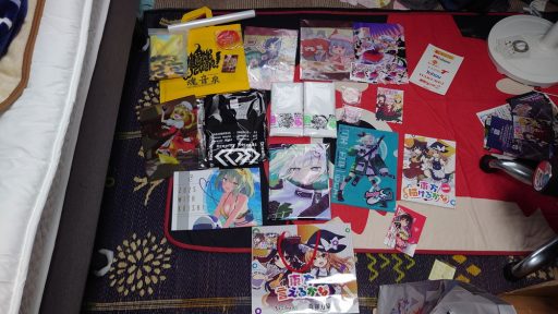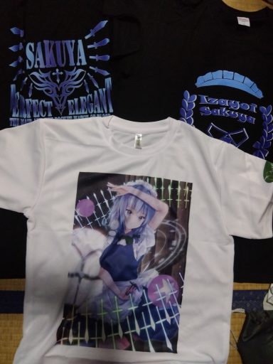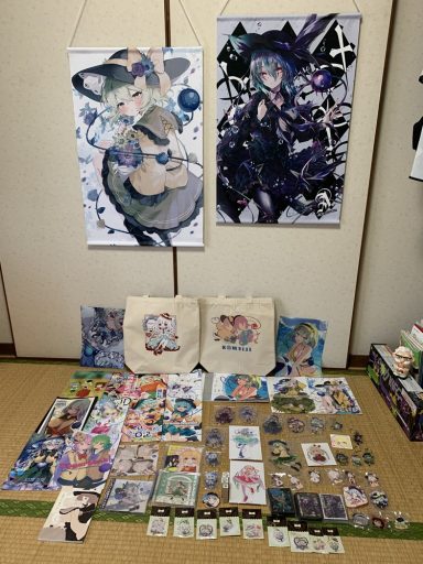 あとは自分の最推しである咲夜さんのTシャツを2着買ったり、とあるサークルでなんの気なしに引いたくじでタペストリーを通常とミニサイズの2枚(通常はお空、ミニサイズはお嬢様)や、咲夜さんがプリントされたTシャツを獲得できて、言葉が出ませんでした!