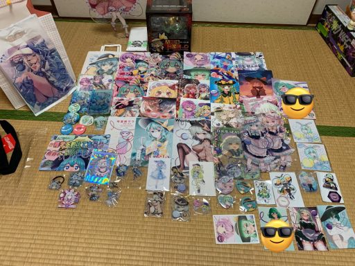 こいしちゃんが好きなので、たくさんお迎えすることが出来てめちゃ満足しました!数量限定のセットがいくつかあったので、買えるかどうか不安でしたが、無事に買えることができたのでよかったです!次回参加する時には予算を増やして、もっともっと欲しいものを買いたいです!