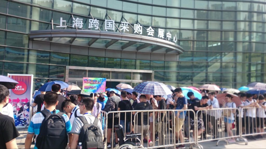 真夏の上海は東京と変わらない暑さ。それでも早朝から大勢の一般参加者が会場で待機していました。