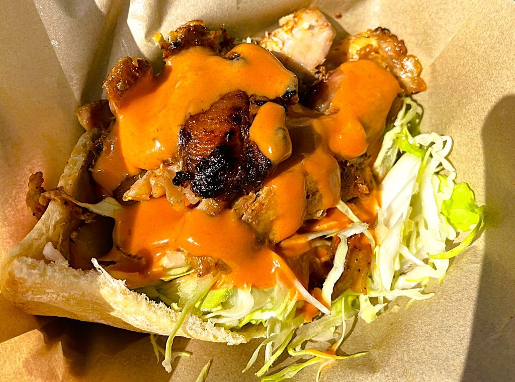 タンドリーチキンとトロピカルなソースの相性は「最強」。キャベツも沢山入ってるから見た目よりも食べやすく、意外と完食出来ちゃいます。包み紙もあるから手が汚れないのもポイントが高い。
