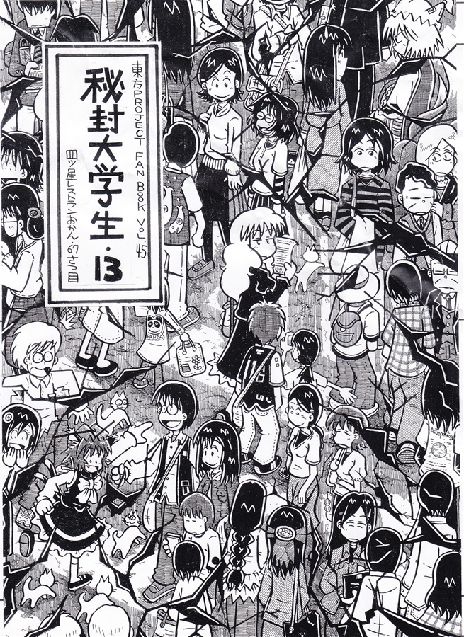 今やあまり見なくなったカケアミ技法で描かれた、秘封倶楽部の大学生としての側面を重視したシリーズ本です。学生ならではの行動力あふれる2人の大学生活は、既に大学を卒業された方にも、どこか懐かしさを感じさせてくれる作品です。(たらい さん)