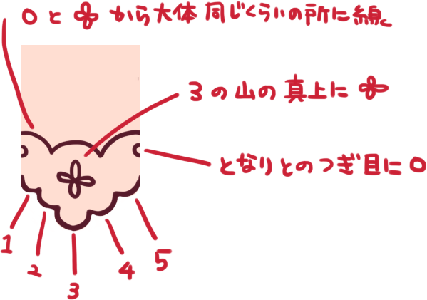 デザインは行き当たりばったりでもいいですが、どのようにに描いていくか、先に形を決めておくほうが良いです。慣れるまでは、書き始める前に上のような画像を確認用として用意しておくと良いかもしれません。