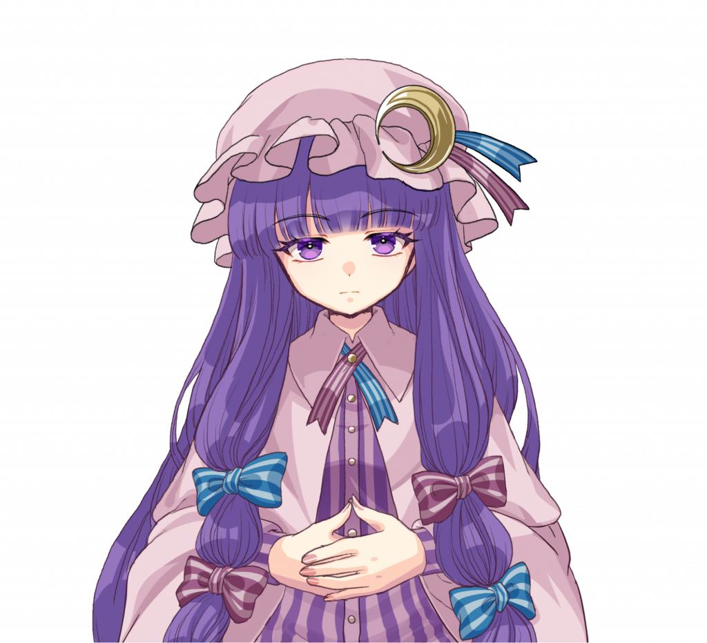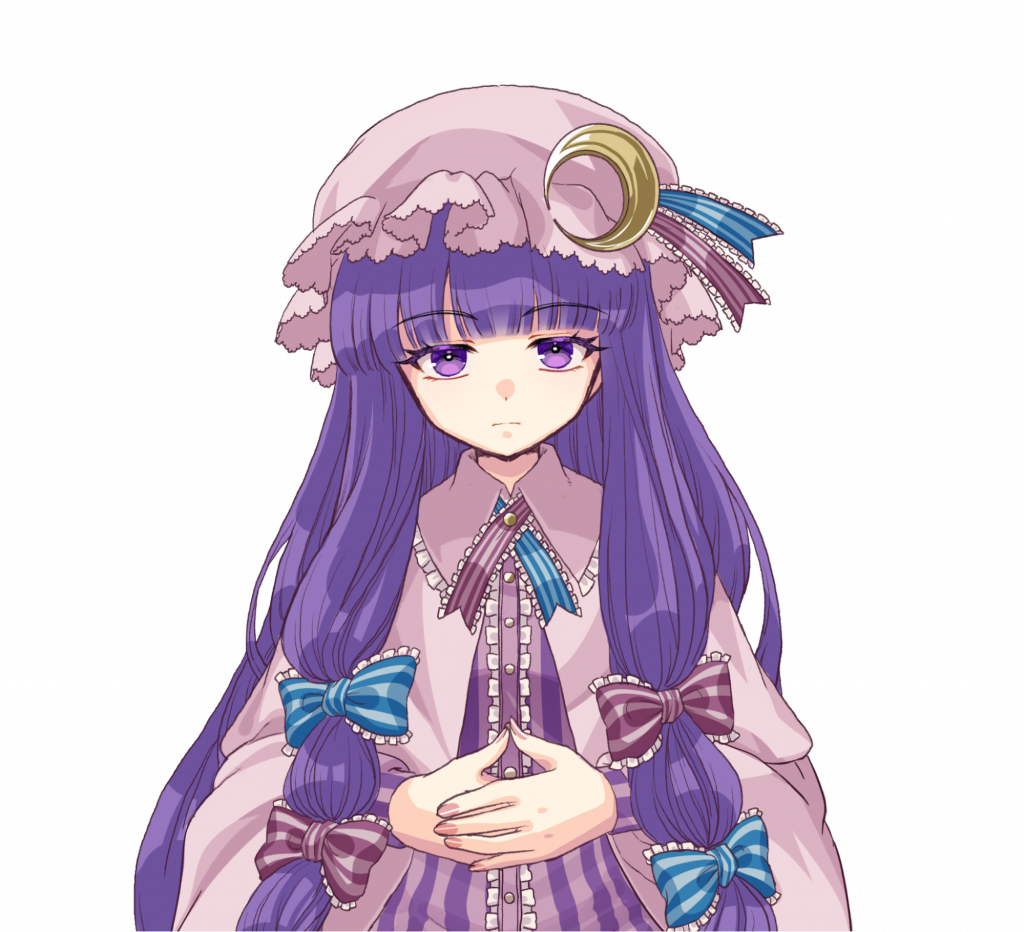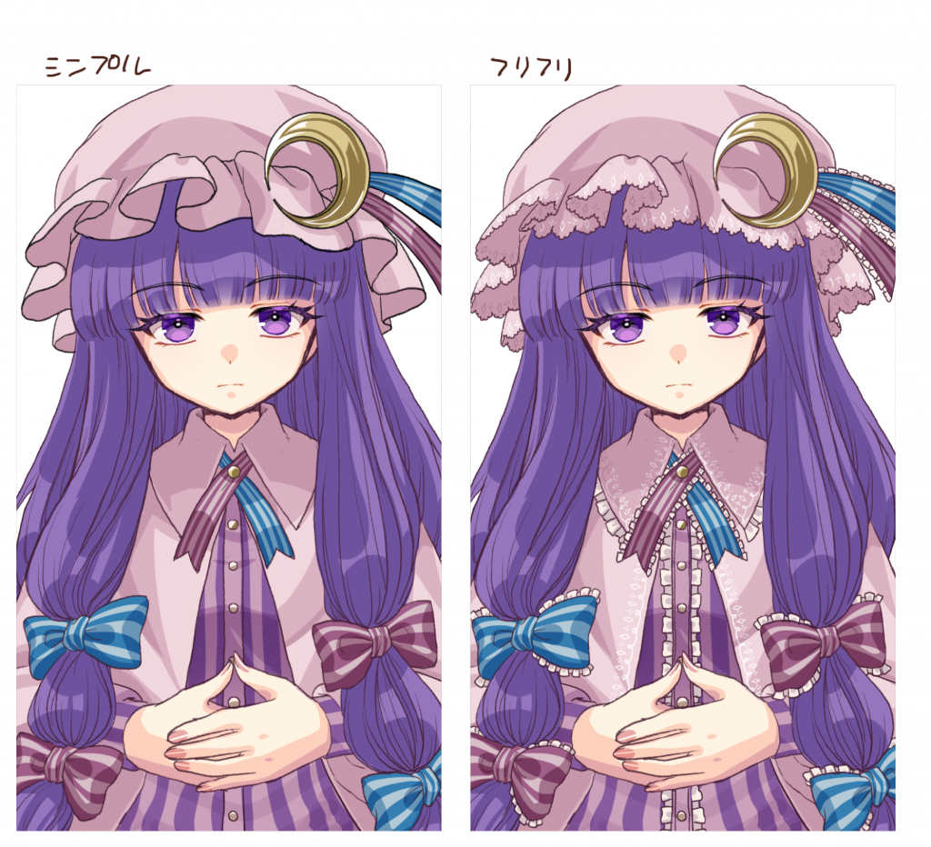 シンプルなパチュリーです。まずは、衣装の襟やリボンなどにフリルを追加してみます。