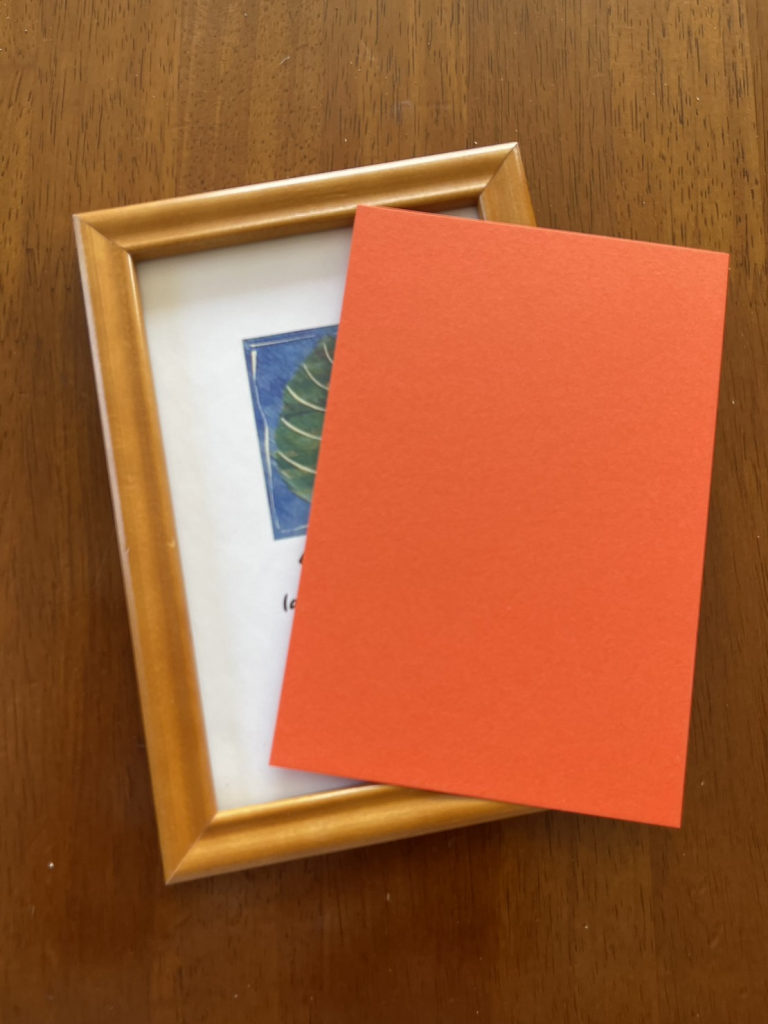 そして今回は、ハガキサイズの画用紙と額縁を用意してみました。額縁は100円ショップで買えるもので十分です。