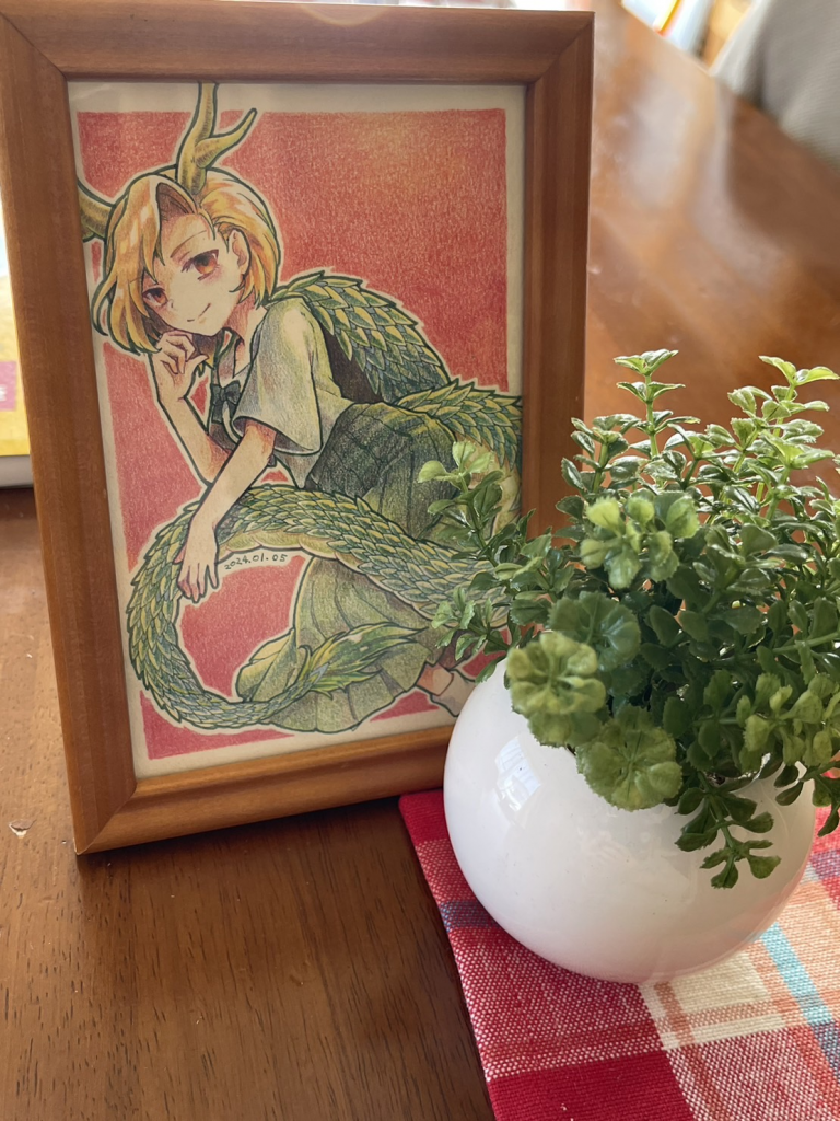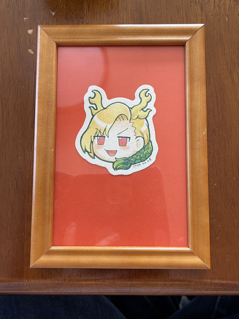 というわけで、紙で描いたイラストは額に入れてみることをおすすめします。特に誰かにプレゼントしたいときなどには、とてもいいです。ぺらっと一枚紙で渡されるよりも、額に入った絵を渡されるほうが、なんとなくテンション上がりません? そういうことです。
