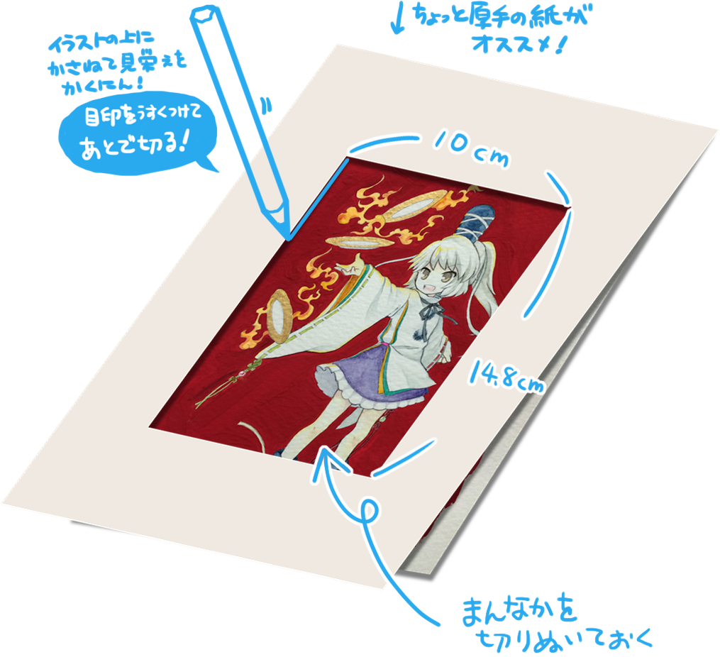 ちなみに正確なはがきサイズは「10cm×14.8cm」ですが、10cm×15cmでもいいと思います。2mmなんて誤差だよ。