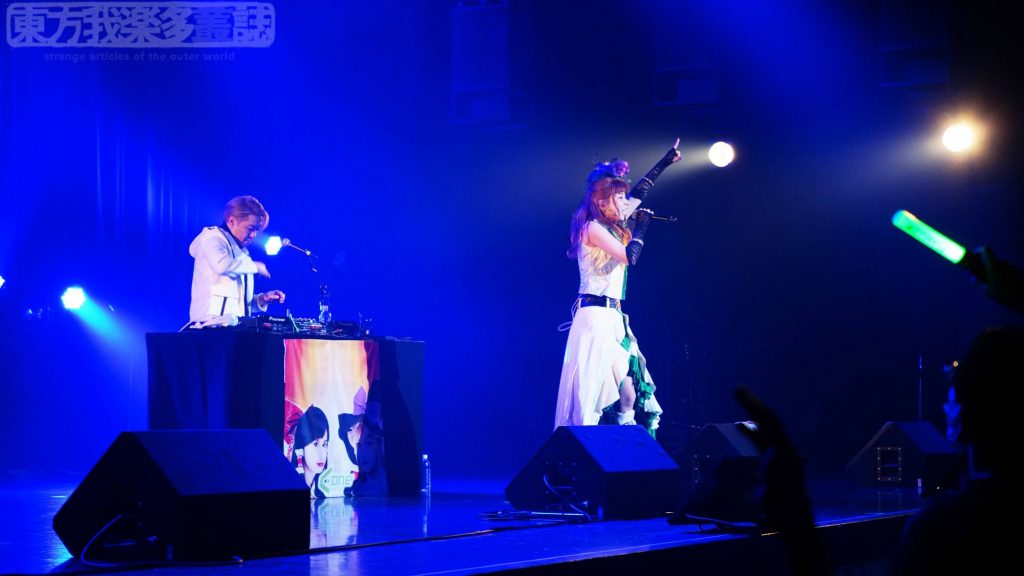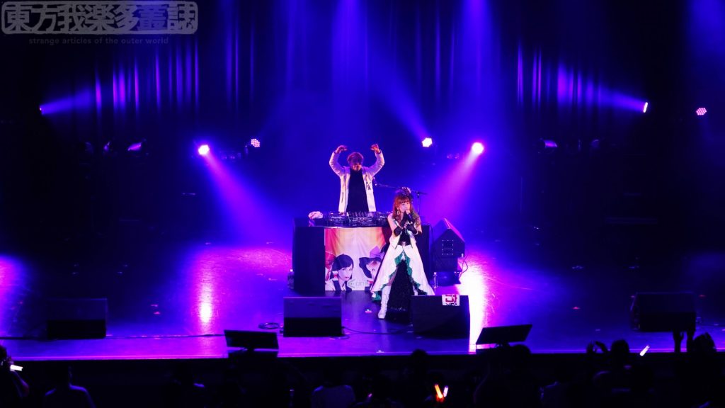 この最強コンビは、たとえるなら、そう……東方ユーロビートのスーパーマンとバットマンです。このコンビを見ずしてA-Oneのライブは終われない…….ふたりの歌声が重なり、破壊力がさらに増したところで次の曲が始まります。