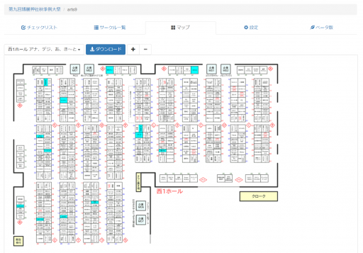 こんばんわ。来週末の10月23日に東京ビッグサイトで開催される「第九回博麗神社秋季例大祭」のカタログも発売されておりましたので、サークル名入り配置図を作りました。