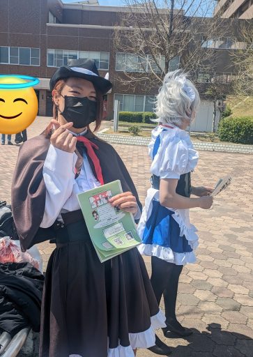 もともとは、4月の新歓告知で先輩たちが少しでも他のサークルよりも目立てるようにと、東方キャラのコスプレしてビラ配りを始めたのがきっかけでした。最初は先輩も恥ずかしがっていたんですけれど、やっていく内に次第にハイになっていって、最後の方はキャラになりきって新歓対面活動をするようになっていました。