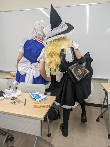 その通りです。現代表のコンテぬえは、それがきっかけでコスプレサークルにも所属するようになって、そこで会得してきた知識や技術をこのサークル内で共有することが多いですね。ここ最近は、メイクの仕方や小道具の製作についての勉強会なども開いたりします。