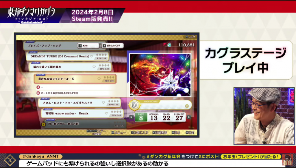 たくさんプレイしていただき、ありがとうございました〜!https://t.co/qOs621BaPV#ありがとうダンカグ#ダンカグ pic.twitter.com/ogd2VHSBKk— 東方ダンマクカグラ◆Steam版 2024年2月8日発売決定! (@danmakuJP) October 28, 2022
