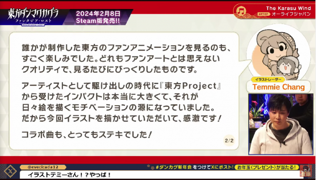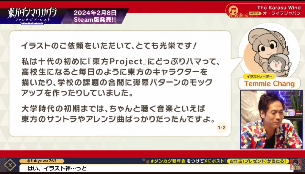 2月8日0:00(JST)に発売開始予定の『東方ダンマクカグラ ファンタジア・ロスト』。その発売の瞬間に開始のボタンを押すだけの番組です。