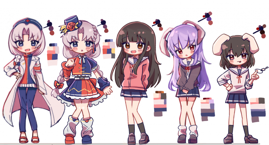 ぼくはただ、描いてみて違和感ない形にしたってだけだったんですが、結果的によかったです。白衣着てる保健室のえーりん先生も、セーラーの輝夜も全然悩まなかったと言うか。着崩し方とかでキャラの性格も出せたので。魔理沙、本当はカーディガンを腰に巻かせたかったですね。