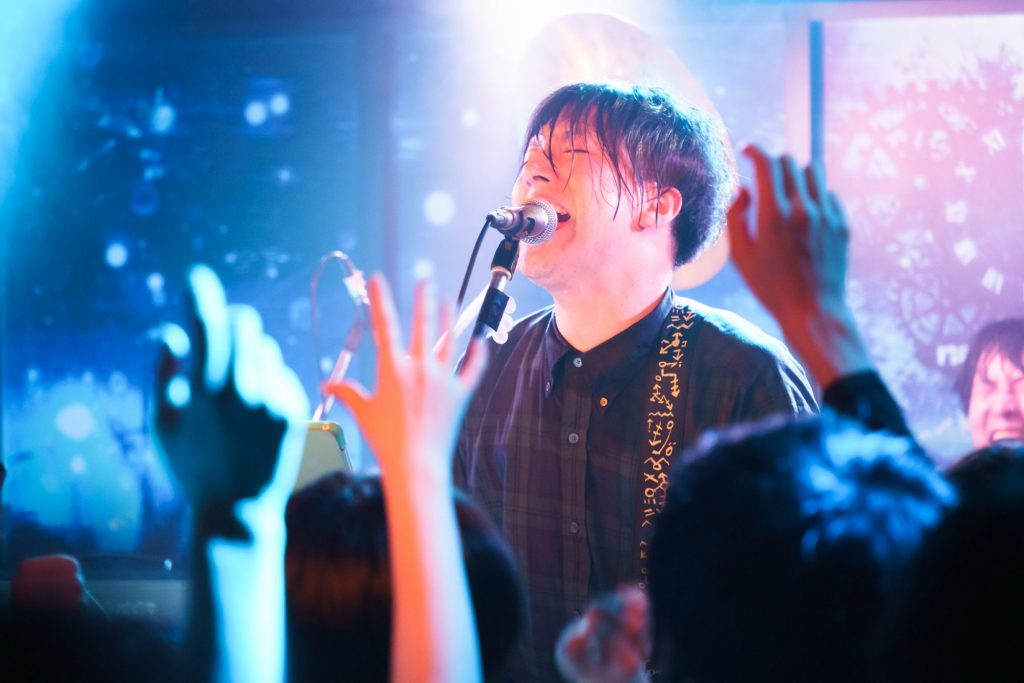 最初を飾る曲は『プレイバックフォーユー』。同タイトルのアルバムの表題曲である。湯豆腐の「Yeah!」という掛け声から一気に会場の雰囲気が一転し、身体が揺さぶられた。「怪我せんように、楽しんでいってください」という湯豆腐。今日は容赦しないぞ、という気持ちの表れだろうか。