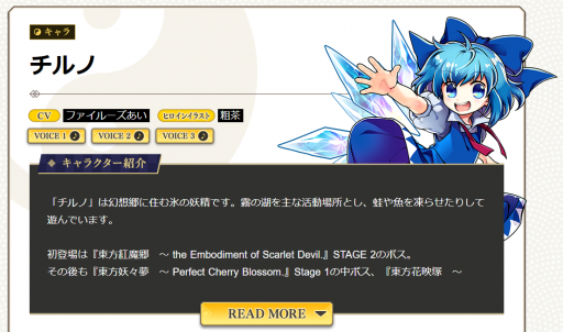 けれども、『ダンカグ』のエピソードだと、意外と周りの妖精たちの小さな変化に気づいていたりするんですよ。だから「あ、意外とちゃんと見てるんだな。天才と馬鹿は紙一重って、こういうことか」と思ったりして。チルノは、ただバカなだけじゃないというところが魅力だと思っています。