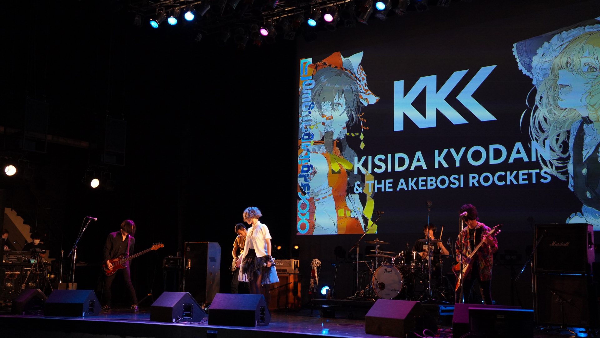 MCを挟み、「緋色のDance」「知ってる?魔導書は鈍器にもなるのよ」と立て続けに紅魔郷の曲を続け、休みなく「霊知の太陽信仰」に入る。みっちゃん(Dr.)によるイントロの破壊的なドラムが誰の記憶にも残る曲だ。自主規制と一緒に緩急も置き去りにした今日の岸田教団&THE明星ロケッツは、先程とは真逆の真剣な表情で楽器をかき鳴らす。