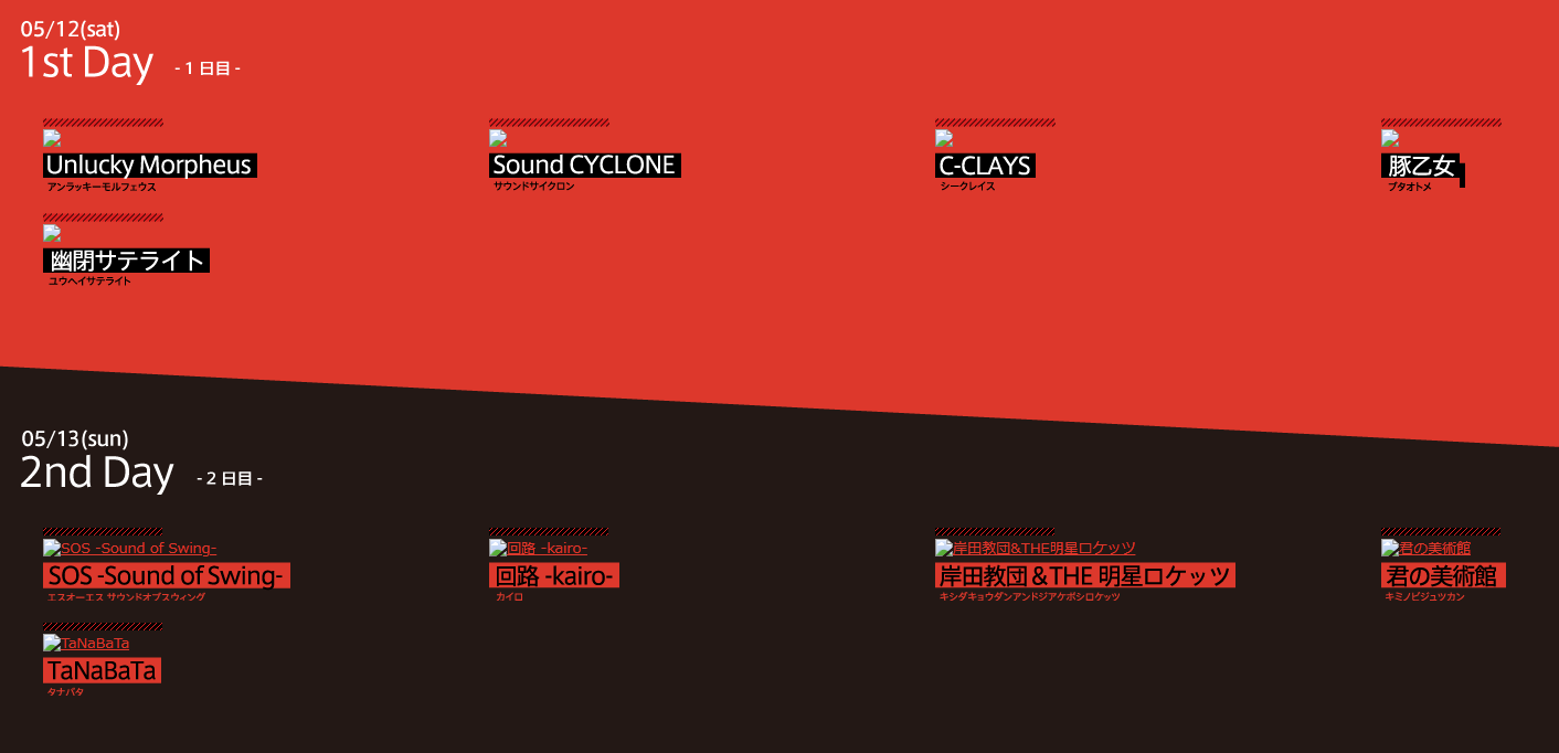 結局、スタッフの再編等があったんです。増やしたり、減ったり、いろいろあって。それで2日間開催にして。会場は新木場STUDIO COASTで、2500ぐらい入るのかな?それを2日間やれば、合わせて5000だから、規模的に小っちゃくなったわけではないなと。