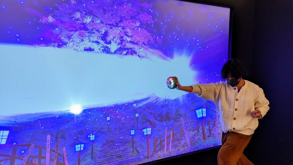 毎日百人以上の方に体験戴いたのが初めてで、多くの方に楽しんで戴き嬉しかったです。電飾八卦炉もいろんな方に驚いて戴き光栄に思います。本作品はカメラを使った骨格検出でモーション検出をしています。… pic.twitter.com/KcyqkrSnKG