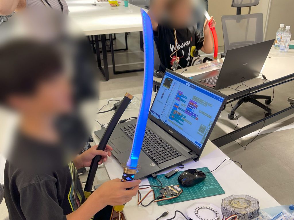 また今回の私たちは、電飾八卦炉や白楼剣を作る電飾造形ワークショップも担当しました。プロの造形屋からは造形を、プログラマーからは電飾のプログラミングを学び、自分たちで小道具を作るという実践タイプのワークショップです。