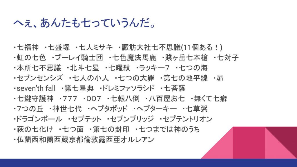 七つにまつわるエトセトラ