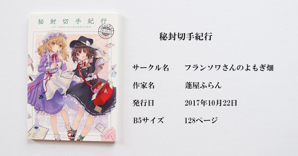 同人誌でもう一つおすすめしたいのが、サークル・フランソワさんのよもぎ畑の蓬屋ふらん氏によって作られた「秘封切手紀行」です。
