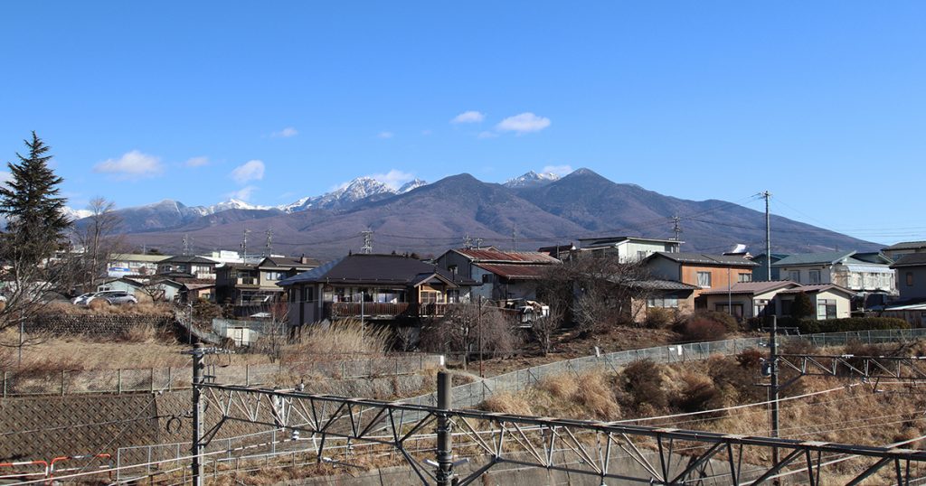 旧富士見高原療養所資料館の近辺は地名に現われているように富士山が望めますが、それ以上に妖怪の山の元ネタである八ヶ岳が良く見えます。特に最寄り駅である富士見駅の陸橋からは、病院の背後に八ヶ岳がそびえているのが確認できます。