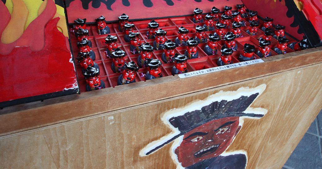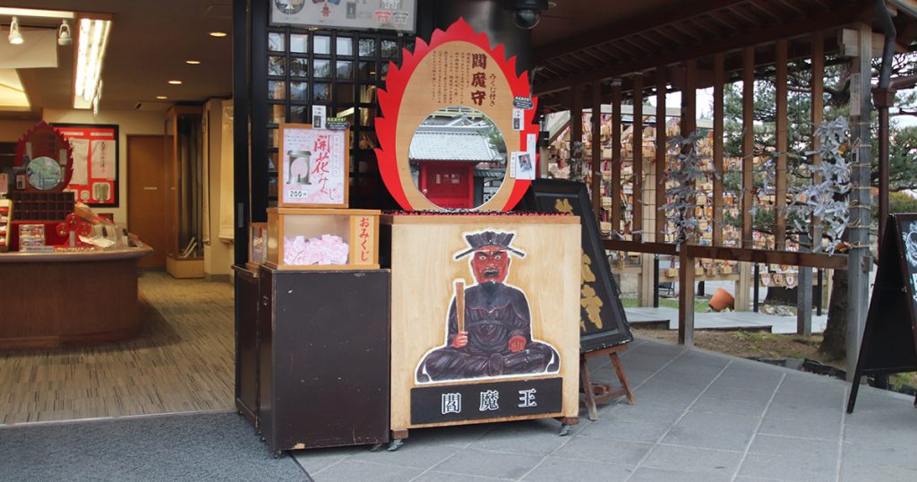 内部は撮影禁止のため画像を載せることはできませんが、本堂外陣(無料で入れる)には赤い顔をした「閻魔像」があります。