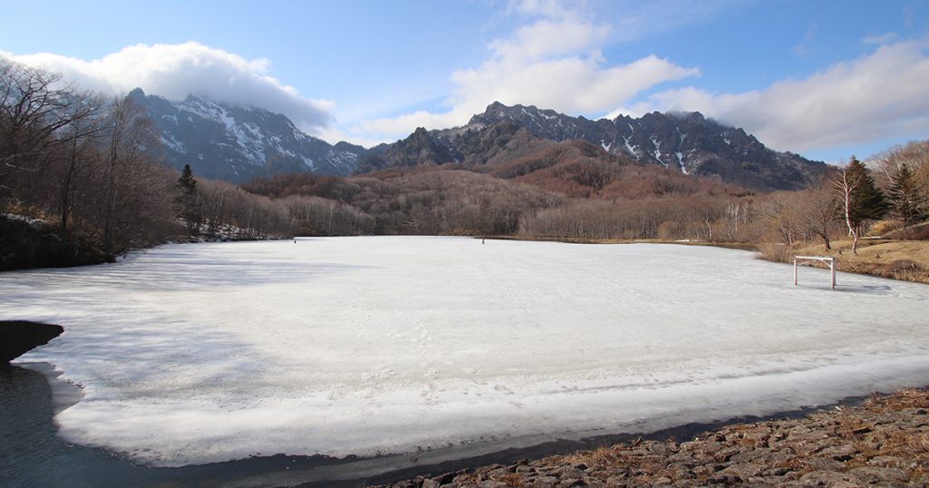 奥社入口から社殿までの中間には随神門があり、そこから南西方向に約1.5km(徒歩20分程度)の距離を進むと鏡池があります。天気が良ければ戸隠連峰の形がはっきり見え、池が凍結しない時期で風が吹かなければ、鏡という名前のように水面に映し出されます。また、後で紹介する公明院の近くでも険しい山の形が一望できます。秘封倶楽部のふたりが興味を持った伊弉諾物質の姿を眺めたい時は、このふたつの場所をおすすめします。