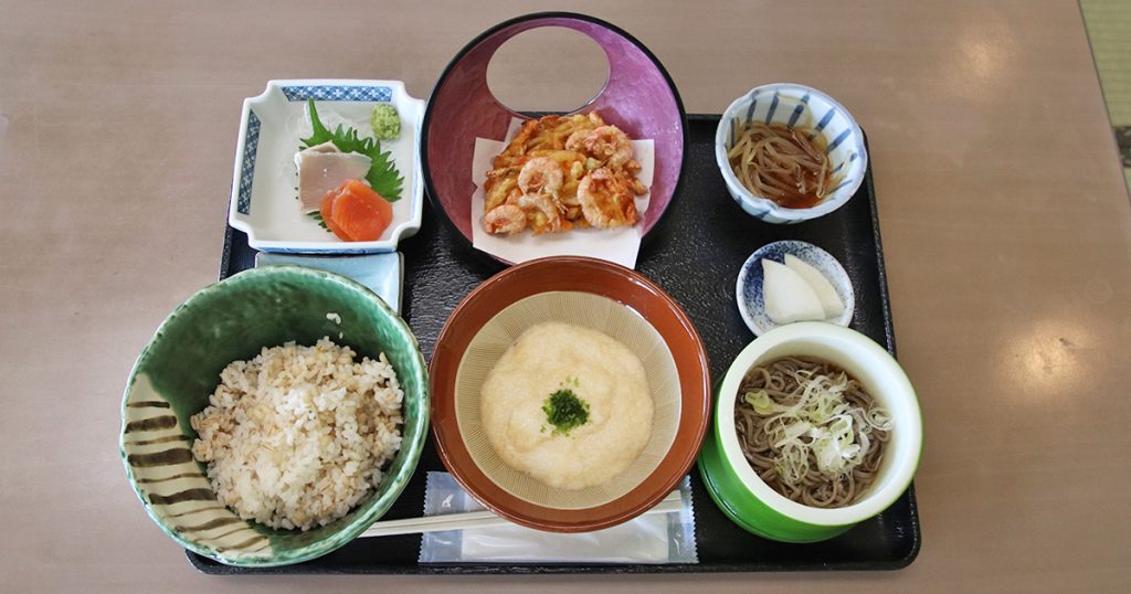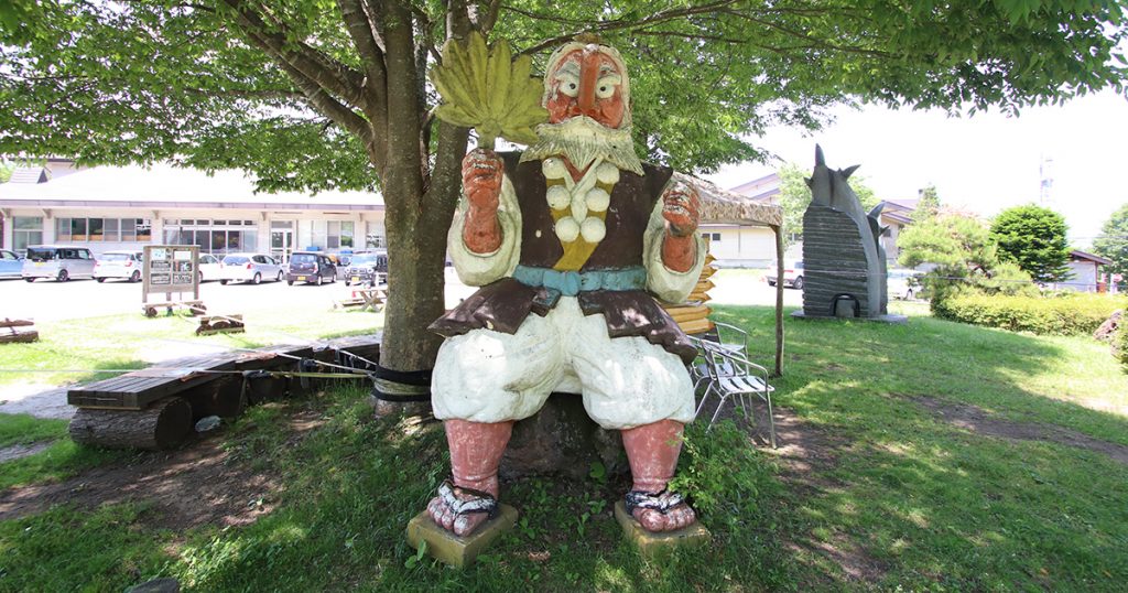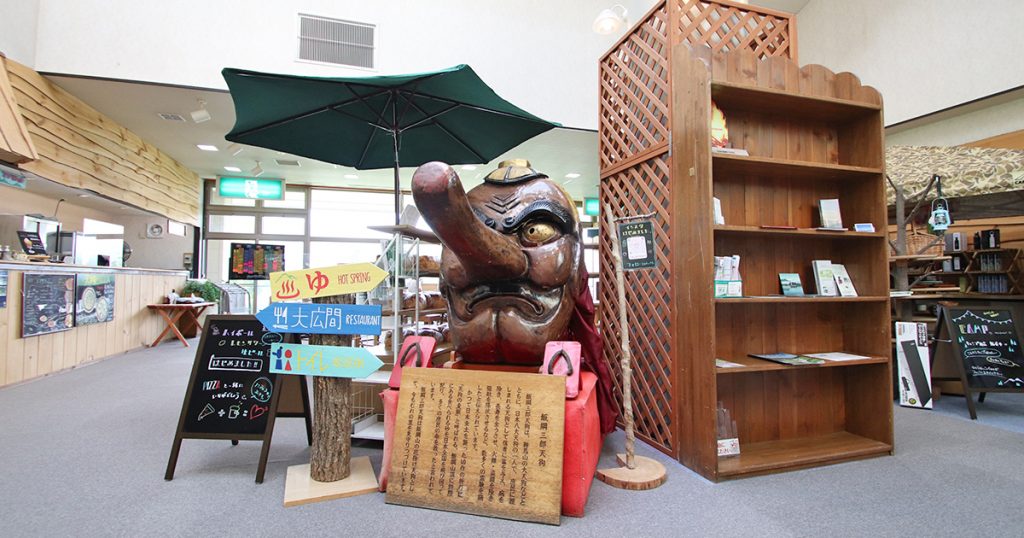 館内外には天狗要素のデザインが採用されており、天狗社会のビジネス的な雰囲気が感じられます。虹龍洞アビリティカードの元ネタになっている天狗の麦飯をモチーフにした定食なども併設の食堂で提供されているので、登山後に汗を流したり食事休憩をする場所としても適しています。