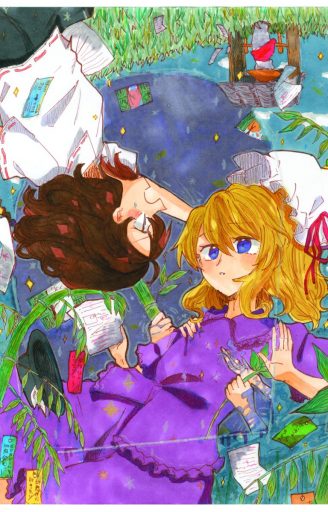 ――当たり前すぎることをお伺いしてすみませんでした(笑)。さて、今回受賞された作品は「七夕坂夢幻能」ということで秘封倶楽部の二人が描かれていますが、なぜ一番好きな魔理沙ではなく、蓮子とメリーを描こうと思ったのでしょうか?