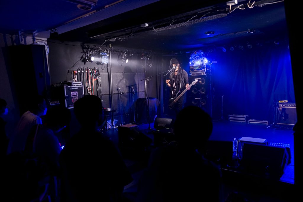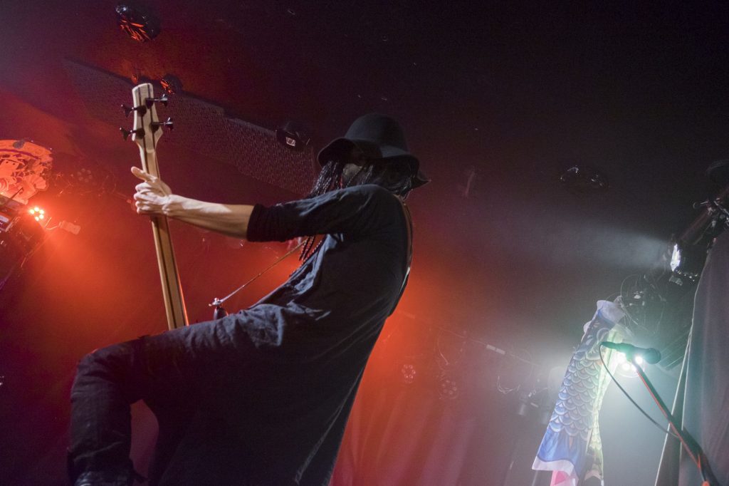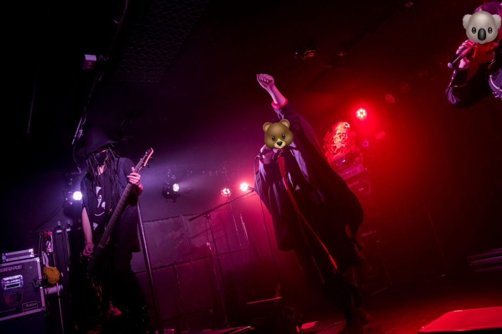 会場にちょっとした笑いが生まれたところで、ナイフさんのオリジナル曲『Line』、そして華原朋美さんと小室哲哉さんコンビの超有名曲『I’m proud』のカバー! ここからコアラさんの清んだ歌声がさらにパワーアップ。Ba.ワニさんの動きにもキレが増し、心地よい音楽が響き渡るとともに、会場の熱が上昇していきました。