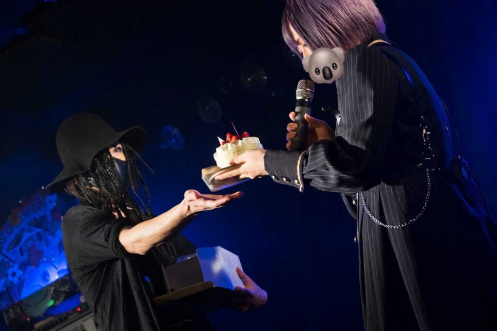 感無量のコアラさんに、ワニさんからの「5年間、ナイフで歌ってくださって本当にありがとうございます!」の言葉によって、再び盛大な拍手が贈られました。コアラさんの活動5周年と言う記念すべき日を、ファンのみんなで、ライブで、祝うことができる。素晴らしい瞬間を目の当たりにしています。