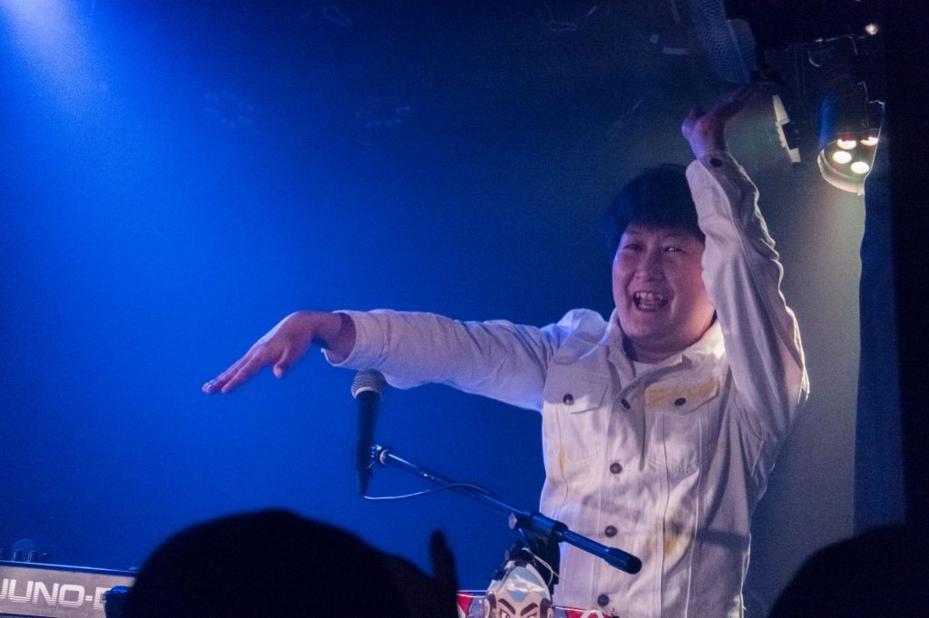 『BLACK HALL』でさらにアップテンポにアゲていくと、フロアはクラップでその熱に応える。ここまで演奏されてきた曲は、ナイフの曲ももちろんだが、ワニさんがこれまで姉妹サークル(monochrome-coat、サリー、AdamKadmon)でアレンジしてきた曲たちも含まれている。まさに、ワニさんの歴史を辿るようなセットリストと言えるだろう。