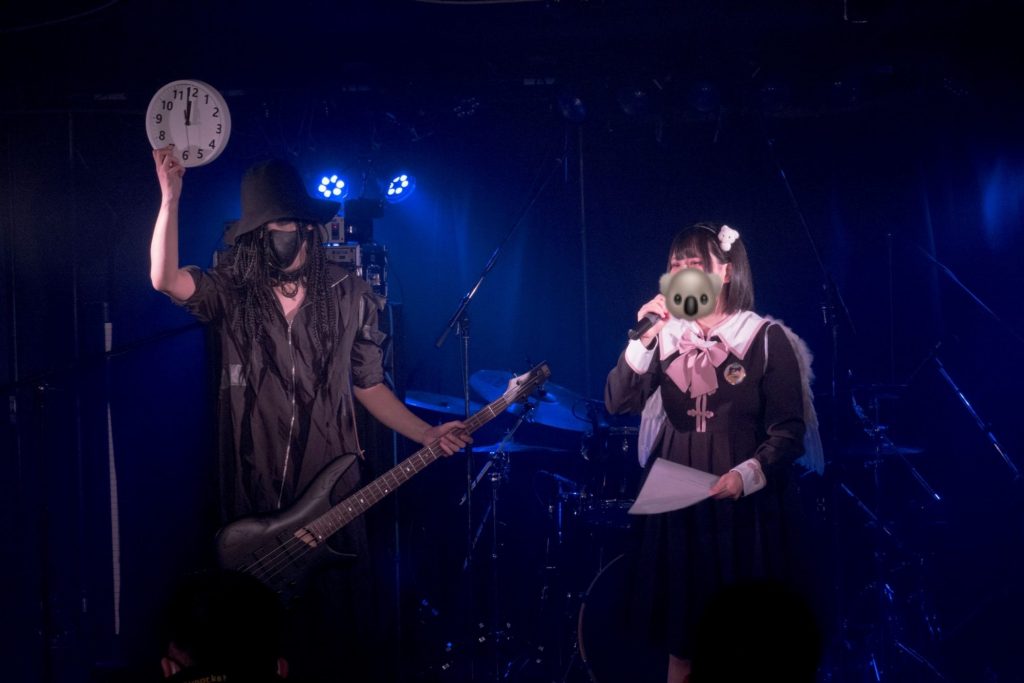 このままライブは加速していくかと思いきや、Ba.ワニさんとVo.コアラは突然「あれ?!今何時ですか?!もうこんな時間ですよ!」と叫ぶ。ワニさんがステージ上で時計を掲げると、時計は23時59分を指していた!!JST(日本標準時)では18時くらいなはずだが、素敵なライブは時空を超えることができるのだ。