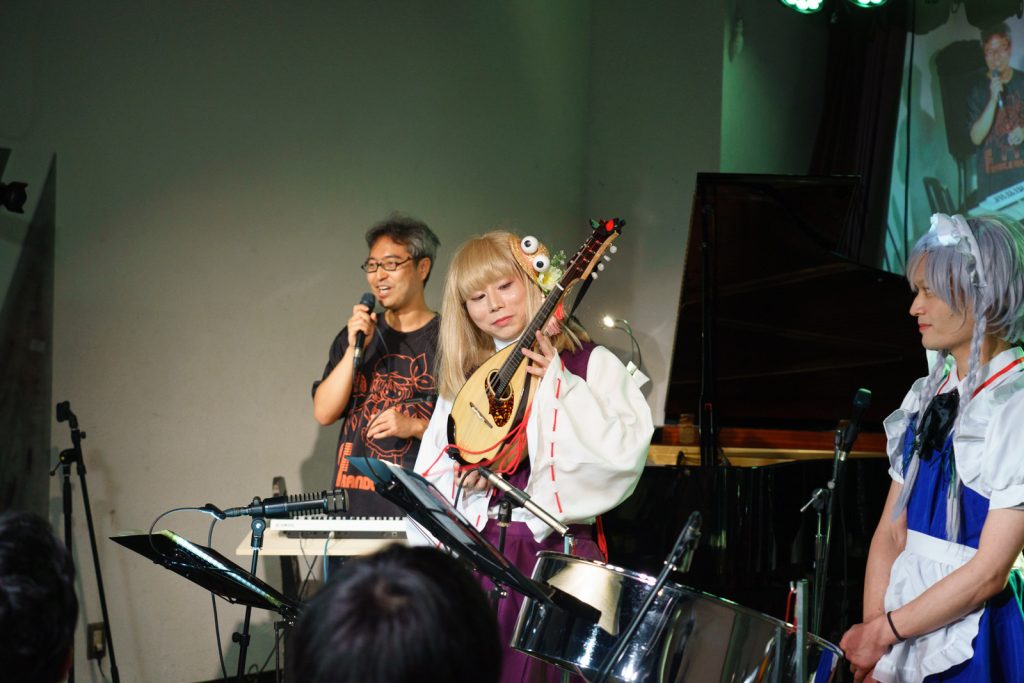 再びスチパンについた咲夜さんの横に、ベースを弾いてた諏訪子ちゃん(itEdokeさん)が登場。取り出したのはスペイン発祥の「マンドリン」。
